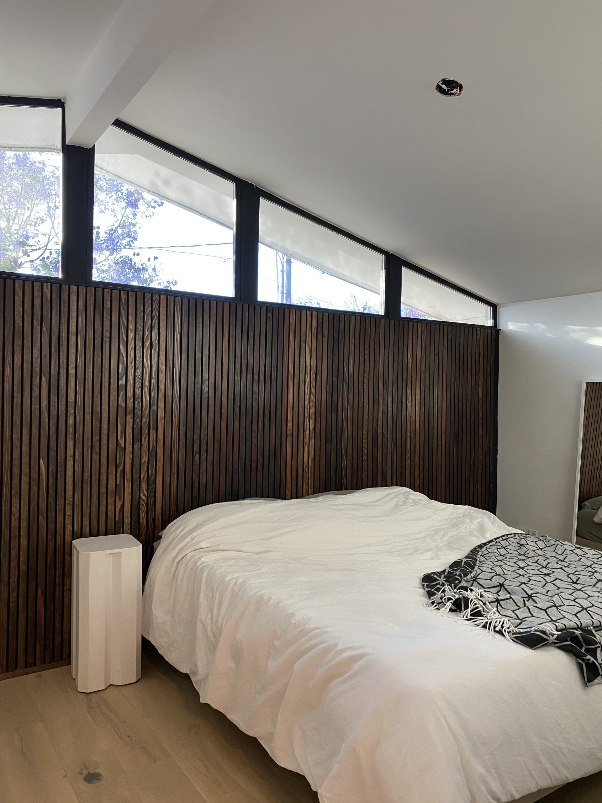 I wrapped up the never-ending slat wall. Boards are still drying for the window portion and need to be installed but since I broke those sections up let’s call one portion done! I’m super happy with it. There were definitely moments of uncertainty during staining as the variation in woods on each board was much more than I wanted. Half of the stack is even 1/4 inch larger and square while the first batch of wood was smaller with rounded edges. By the point I realized this inconsistency the boards were already home, cut, sanded, and there was no way I was going to shell out the cash or time to hunt down more supplies but luckily once I grouped each type together during install along the wall you don’t even notice the size difference. I plan to break down the steps I did to complete the wall so stay tuned in a later post.