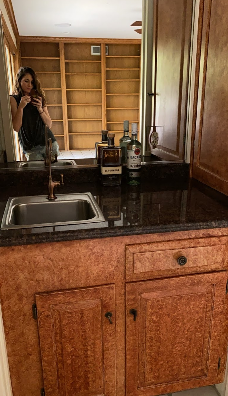 With all these new spaces that need updating it was hard to pick just one BUT after taking a poll on Instagram I finally landed on this room that I call The Lounge…complete with it’s own wet bar.