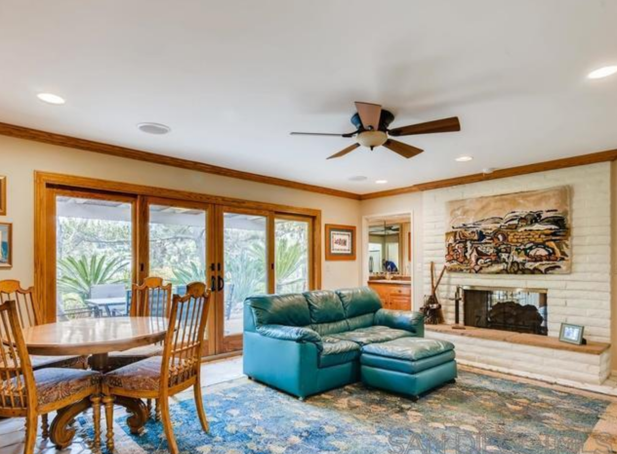 The room is in the center of the house and opens into the kitchen and has sliding doors to the outside. The gas fireplace is double sided, it has a functioning wet bar, and one thing I love that is still in tact is the layout. I am so used to homes with a wide open floor plan that there is a bit of charm to the individual rooms. There are doors closing off this space and I can just picture the cocktails and conversations that went on in here after dinners.