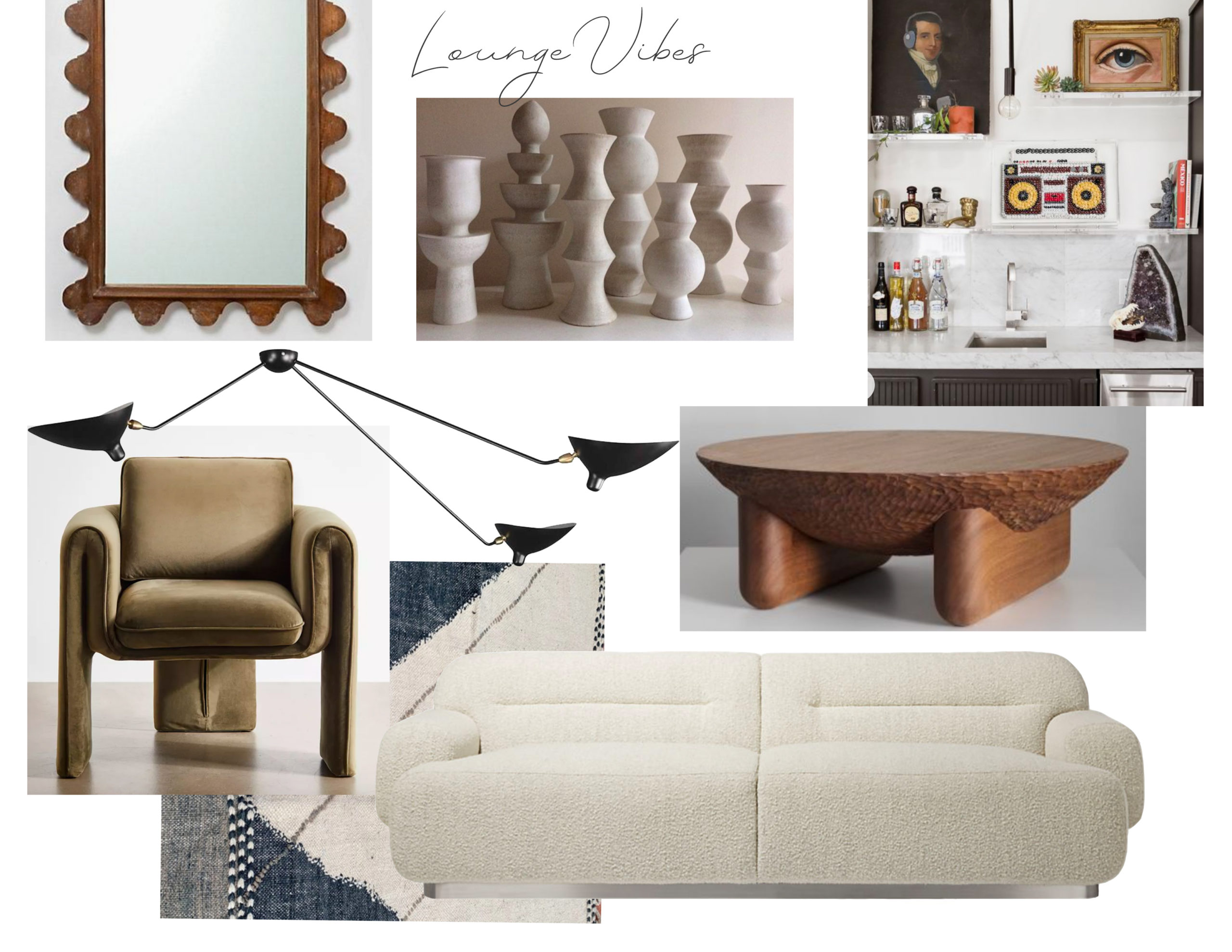 The room will get a fresh coat of white paint because the lack of light is my only complaint. There is way too much warm wood going on so all will get painted except the doors. I’m hoping they won’t be as orange once the room is painted. The wet bar is getting it’s own mini makeover with some paint, lighting, shelving, and styling. I am very into the new post modern movement and plan to incorporate some furniture pieces and accessories to play up that vibe. Think sculptural tables, lots of curves, and a touch of quirkiness.