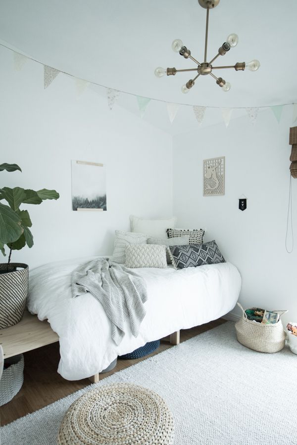 Previously this space had been used as a playroom/guest room/small workspace. For a 9 x 8 foot room it has been a valuable room in our home. Intentional design and built in furniture has made this small space work for us.